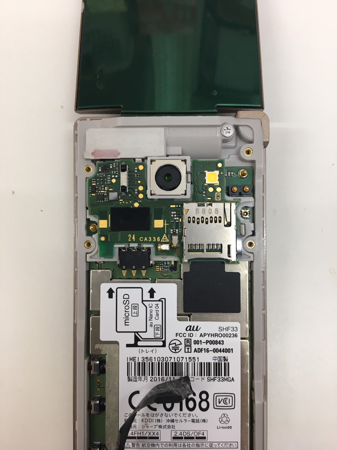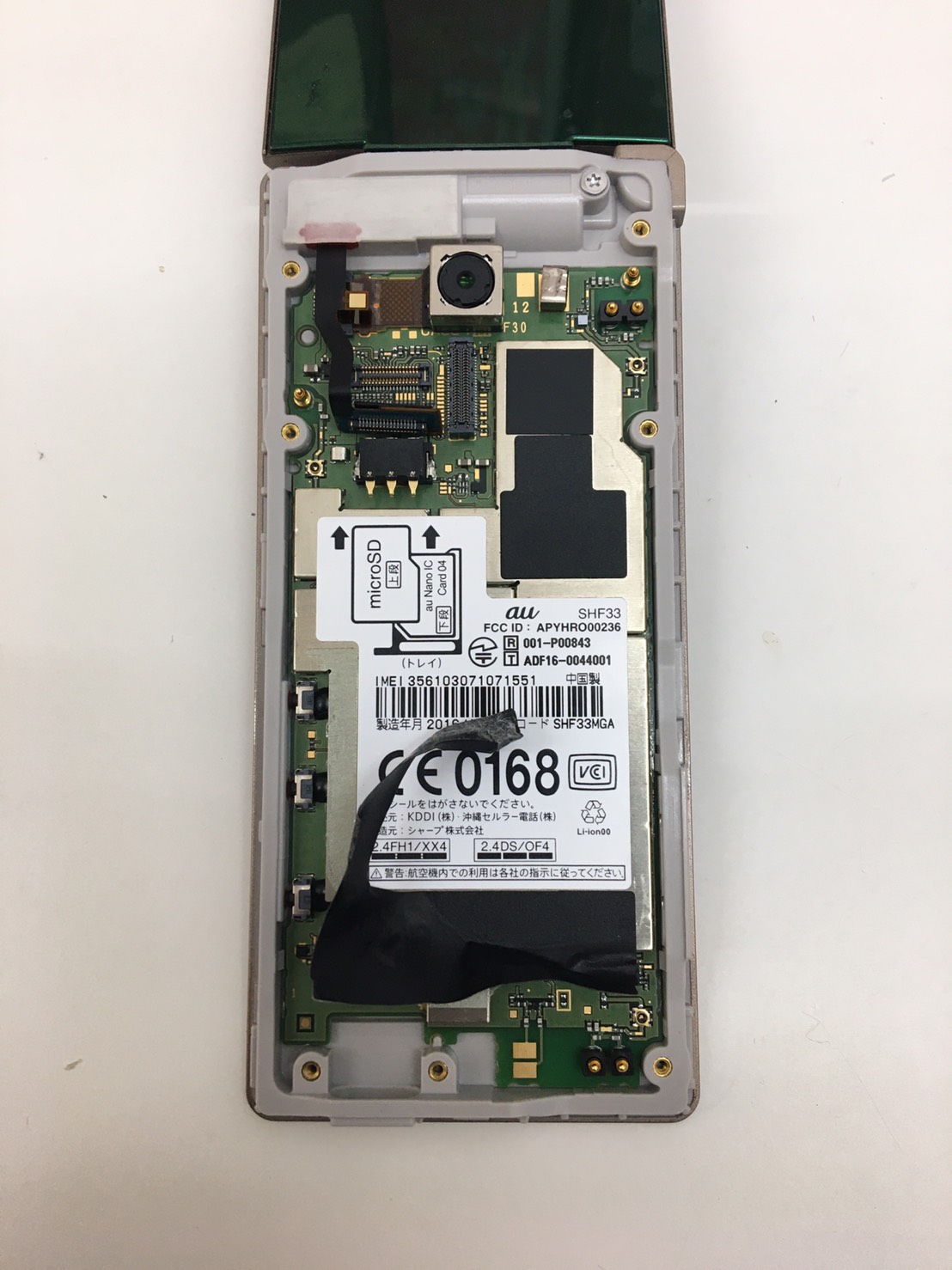 AQUOS SHF33の基板移植は背面を展開してから行います。
