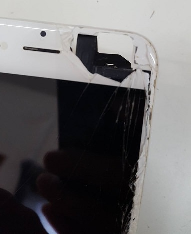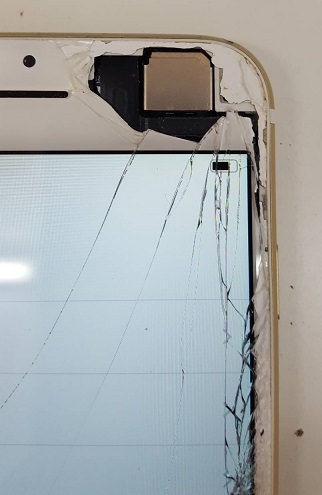 重度のガラス割れした端末は、割れたガラス片が基板に触れて