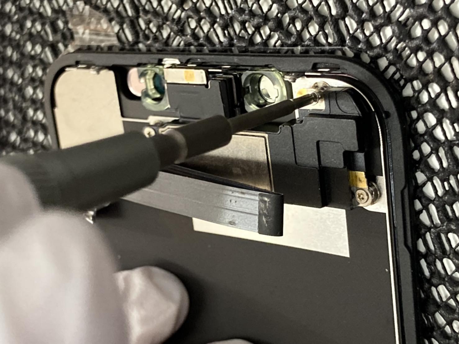 パネル裏側にある近接センサーやフロントカメラなどの細かいパーツを取り外し新しいパネルへと移植していきます。