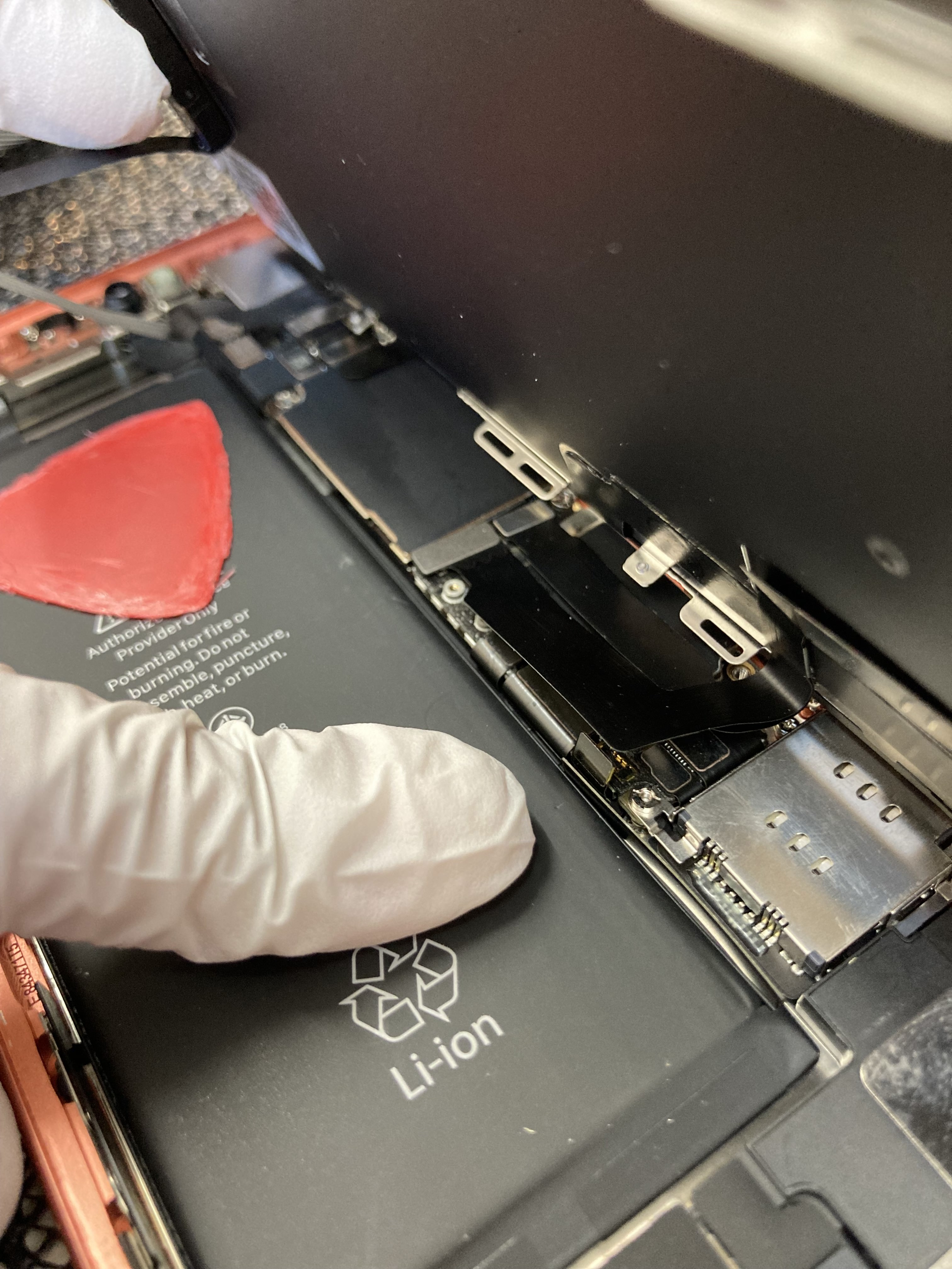 バッテリーのコネクター、液晶やフロントカメラなどのコネクターを取り外して本体とパネルを分離していきたいと思います。