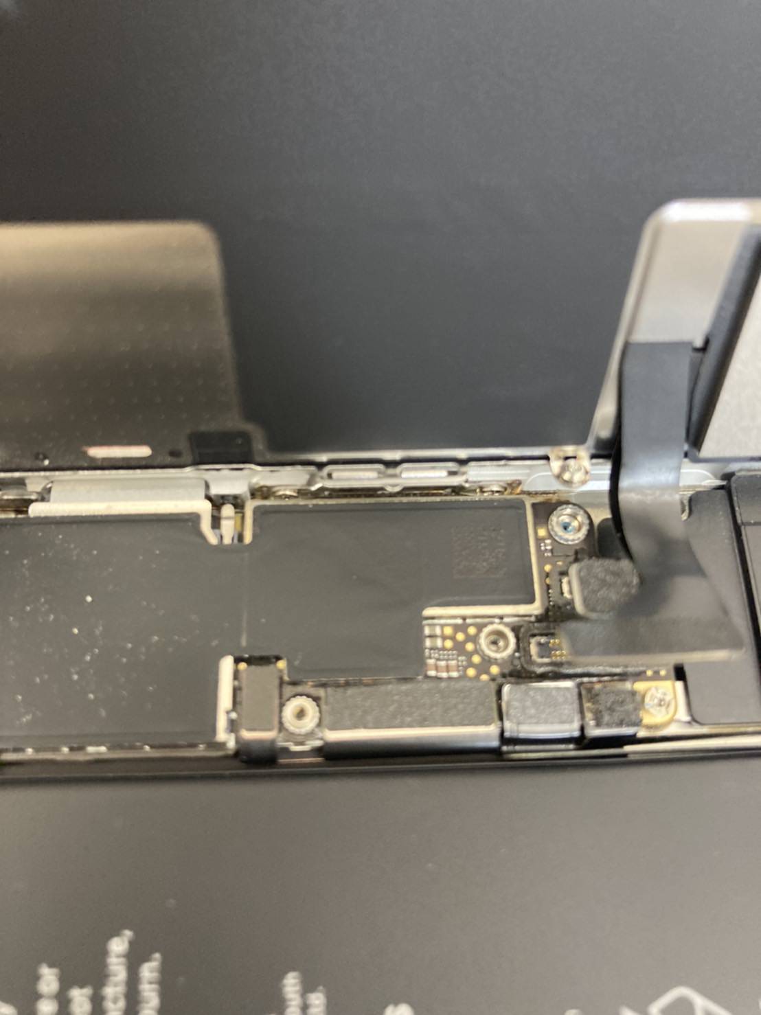 iPhoneSE2の画面交換の場合、画面下部にあるホームボタンと上部にあるイヤースピーカー、フロントカメラは新しい画面へ移殖する必要があります。