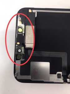 取り外したら、イヤースピーカーとセンサー部分を新しく交換するパネルに移植させていきます。