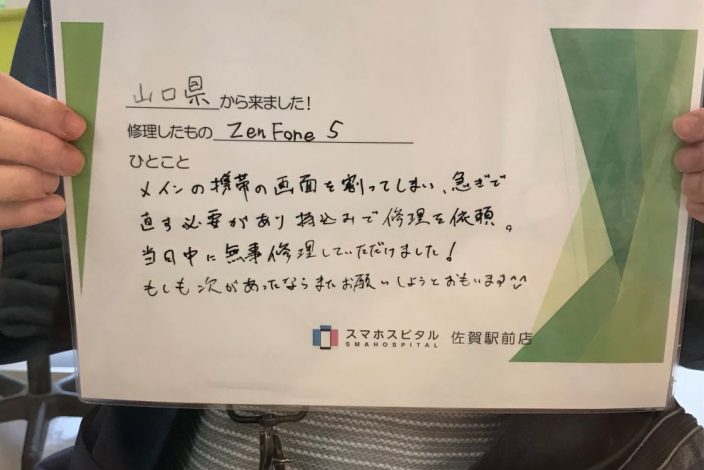 画面交換修理+バッテリー交換修理後のお客様の感想