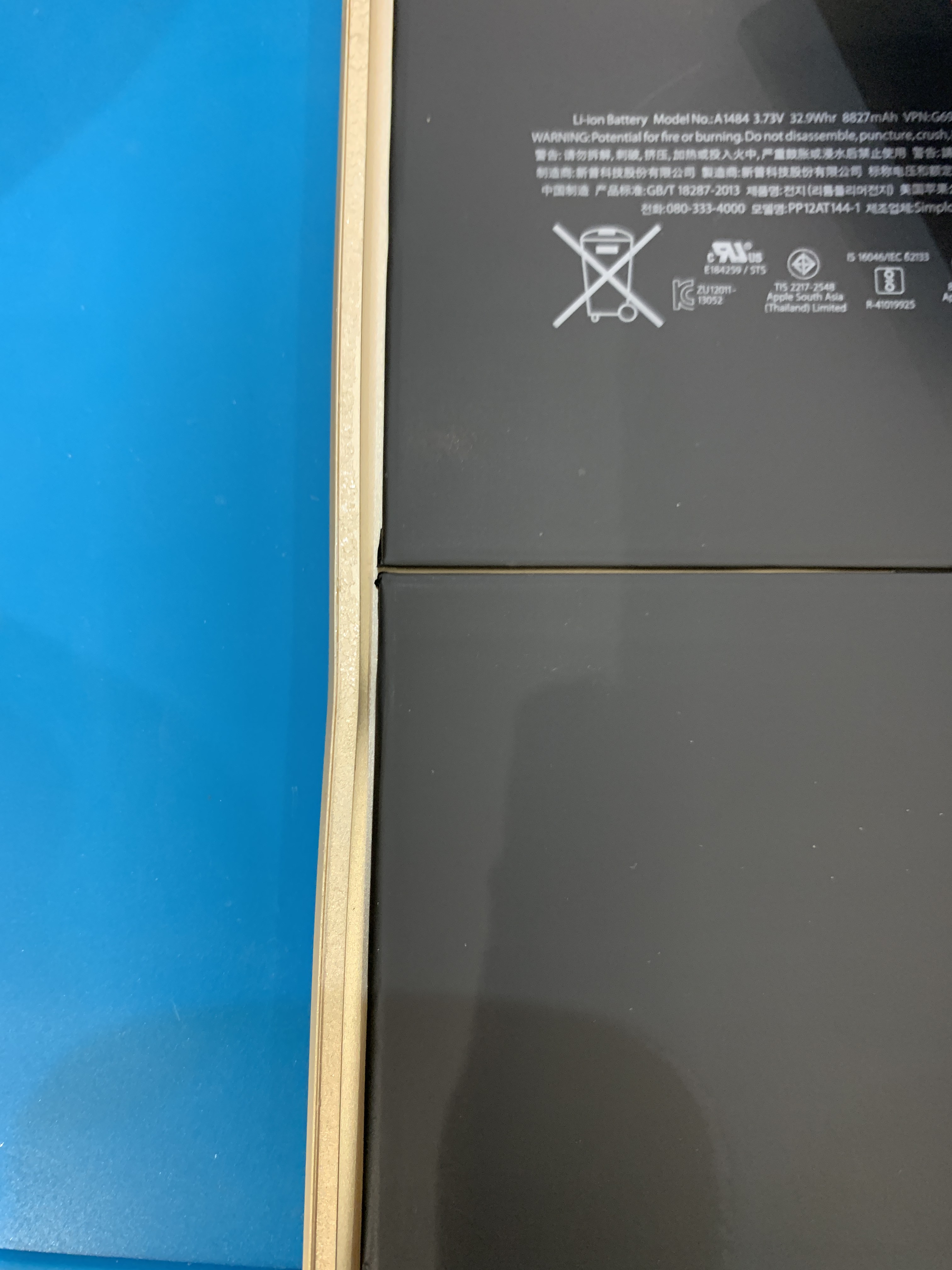 ただし、目に見える見えない関わらずフレームは必ず歪みます。お預かりしたiPadは地面にぶつかった場所が内側に歪んでしまっています。