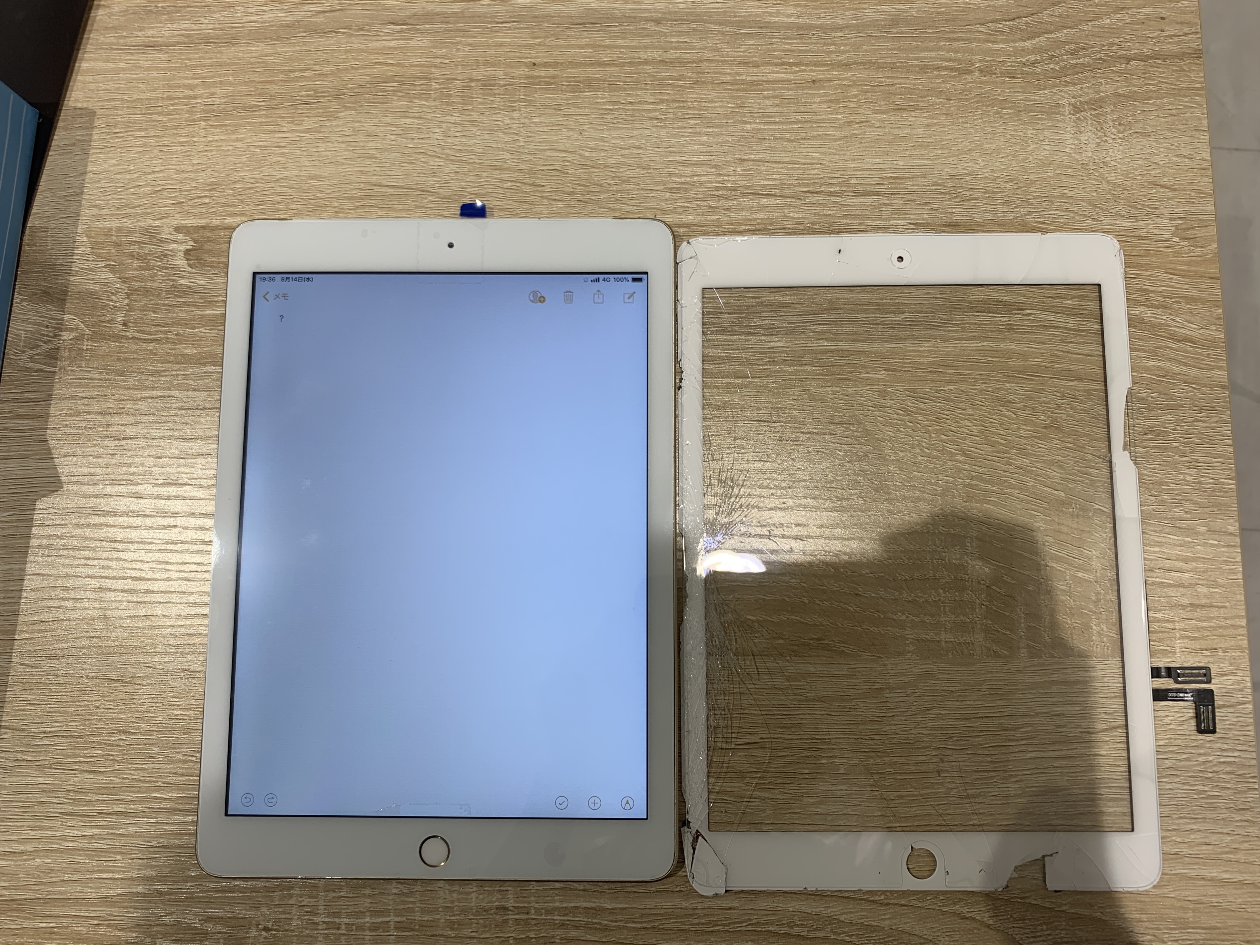 iPadは世代により画面パーツが”ガラスと液晶分離型”と”ガラスと液晶一体型”に分かれます。