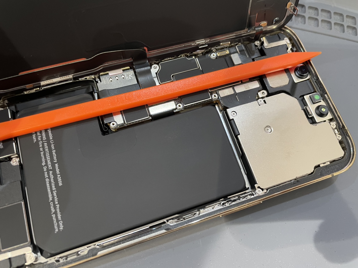 iPhoneは、12以降の世代の粘着が強力なため端末に損傷が出ない範囲で加熱し分解していきます。
