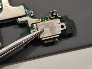 しかしながら、なんとGalaxy S10ではメイン基板に充電口が直接固定されています。