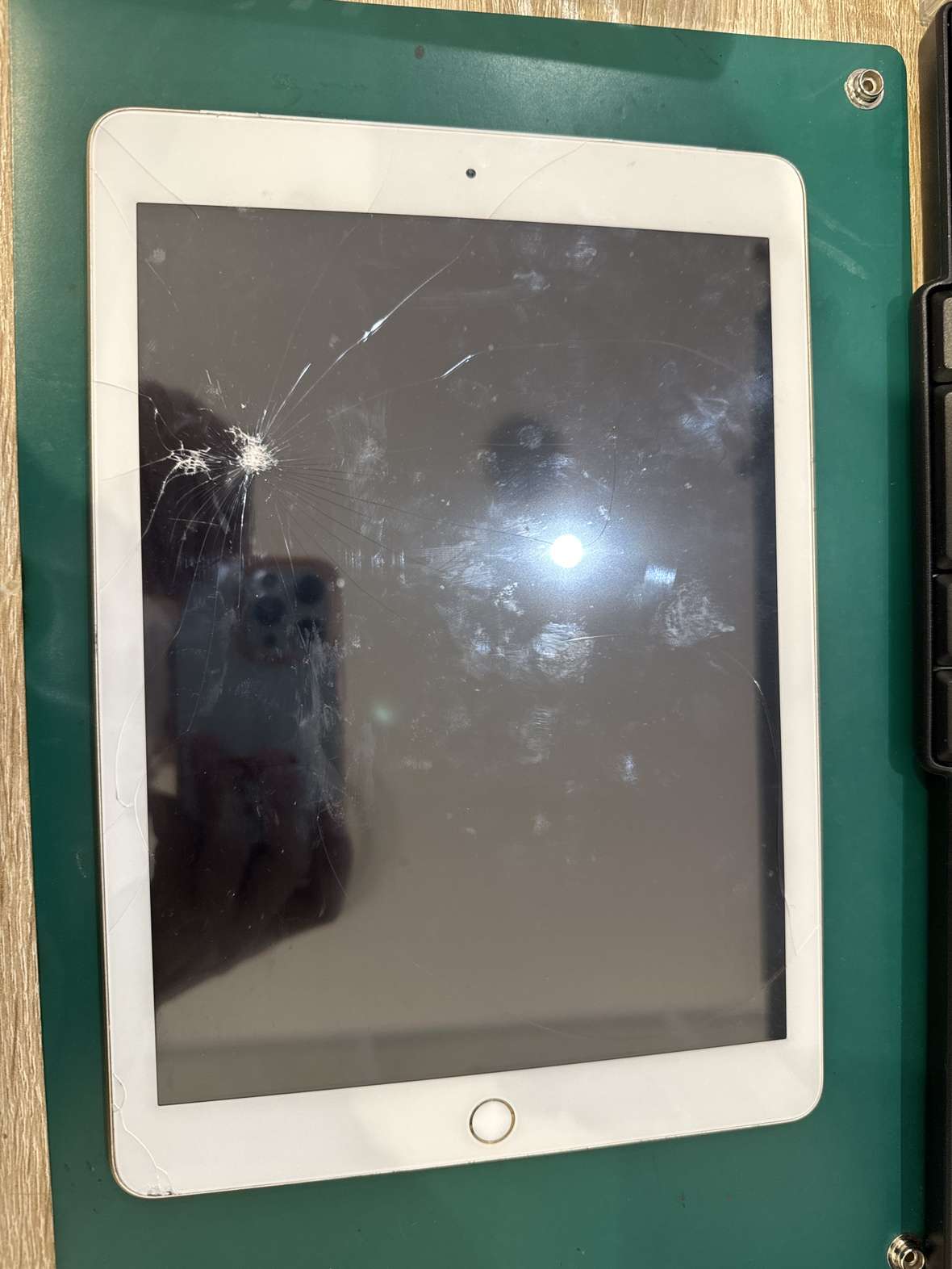 不意にiPadの上に物を落としたら画面にひびが入ってしまった。