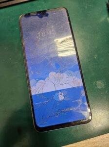 お客様よりお持ち込みいただいた端末は、画面全体が激しくひび割れてしまっている状態でした。
