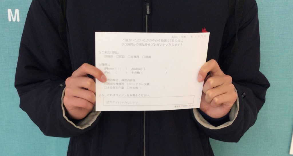 iPhone 6s バッテリー交換のお客様から頂きました