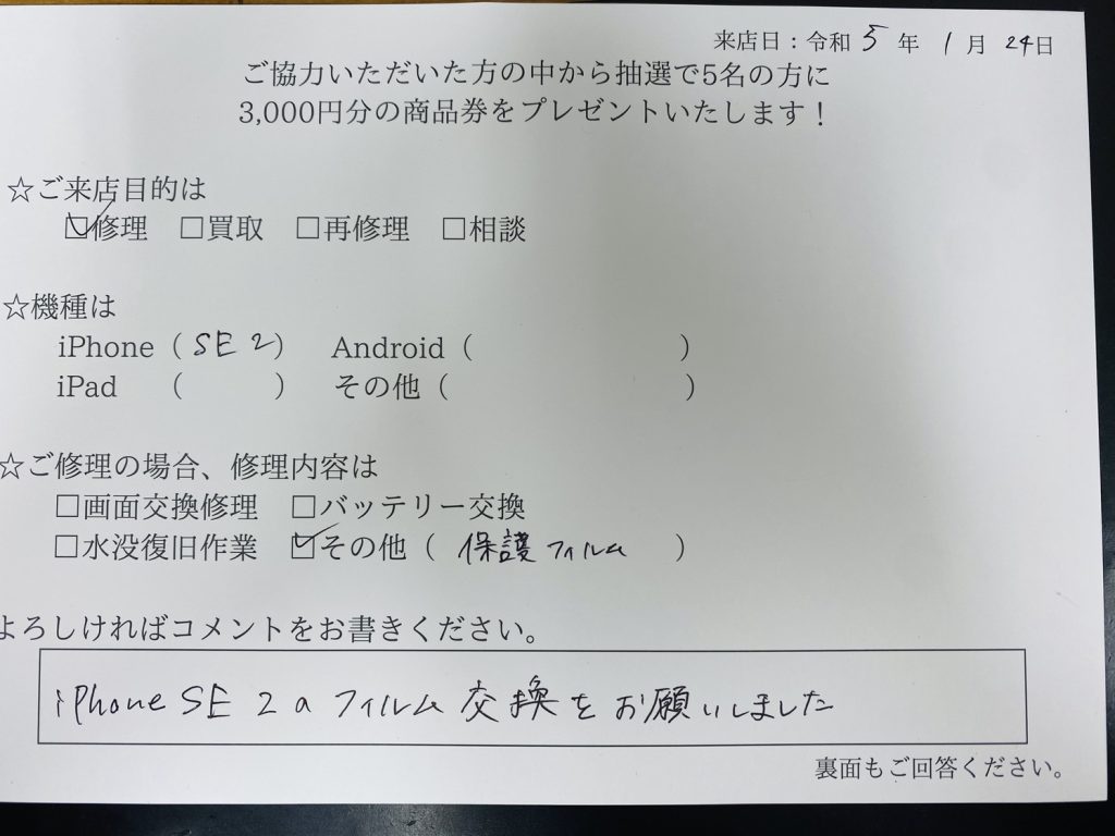 スマホスピタルイオン相模原 【iPhone SE2】ガラスフィルムの交換をしました!