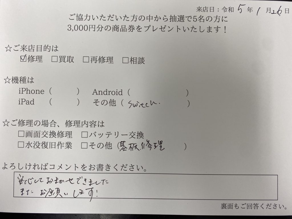 スマホスピタルイオン相模原 【Switch】充電系統の基板修理をして頂きました!