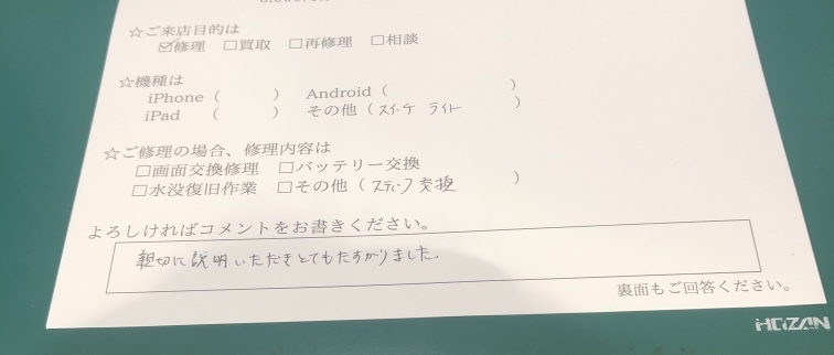 スマホスピタルイオン相模原 任天堂Switchliteのアナログスティック交換ご依頼のコメント!