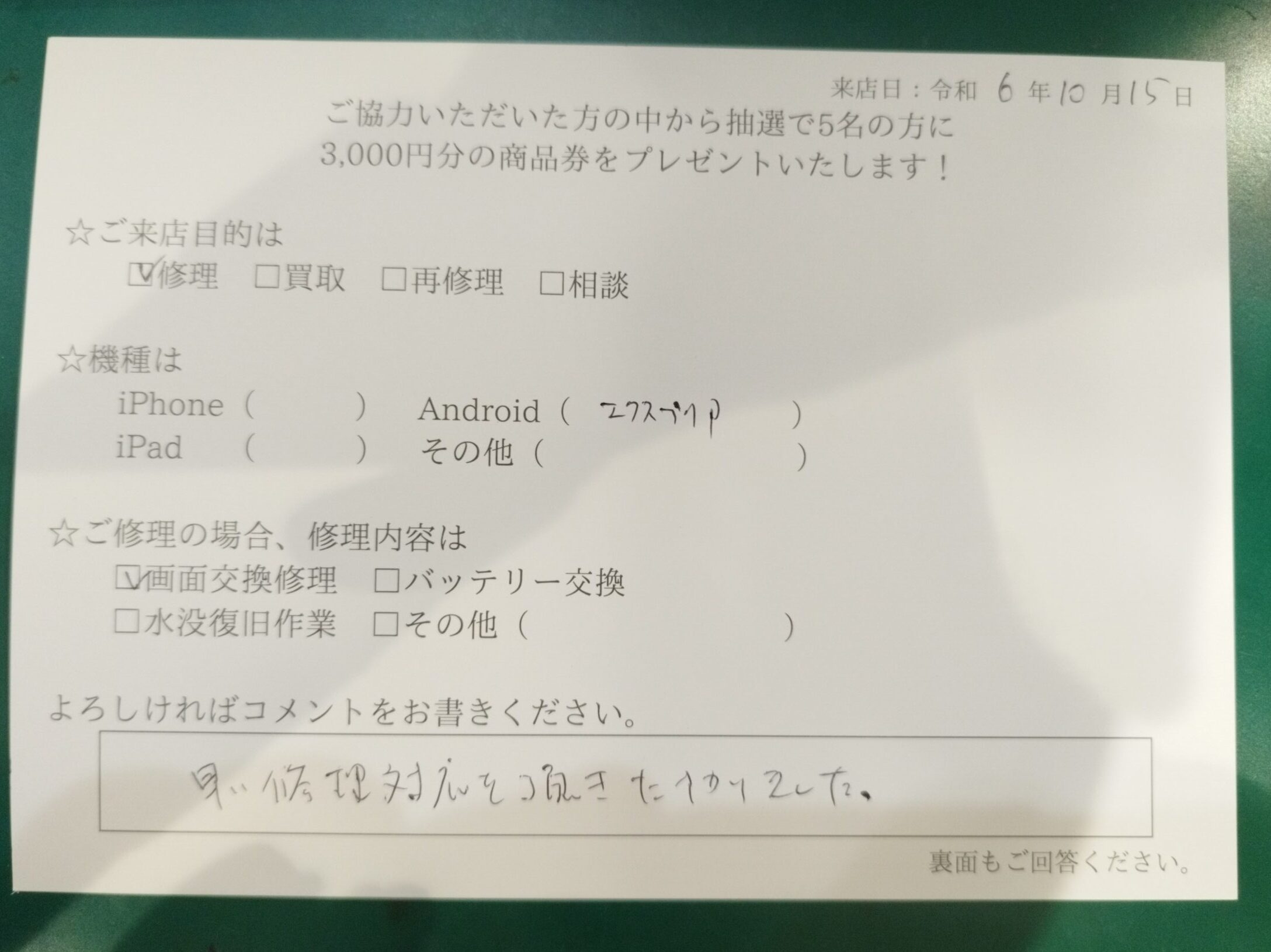 スマホスピタルイオン相模原 Xperia 10Ⅲ画面交換修理をご依頼頂いたお客様よりコメントを頂きました!