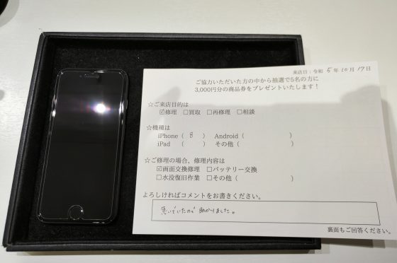 iPhone8画面修理のお客様よりコメントを頂きました!