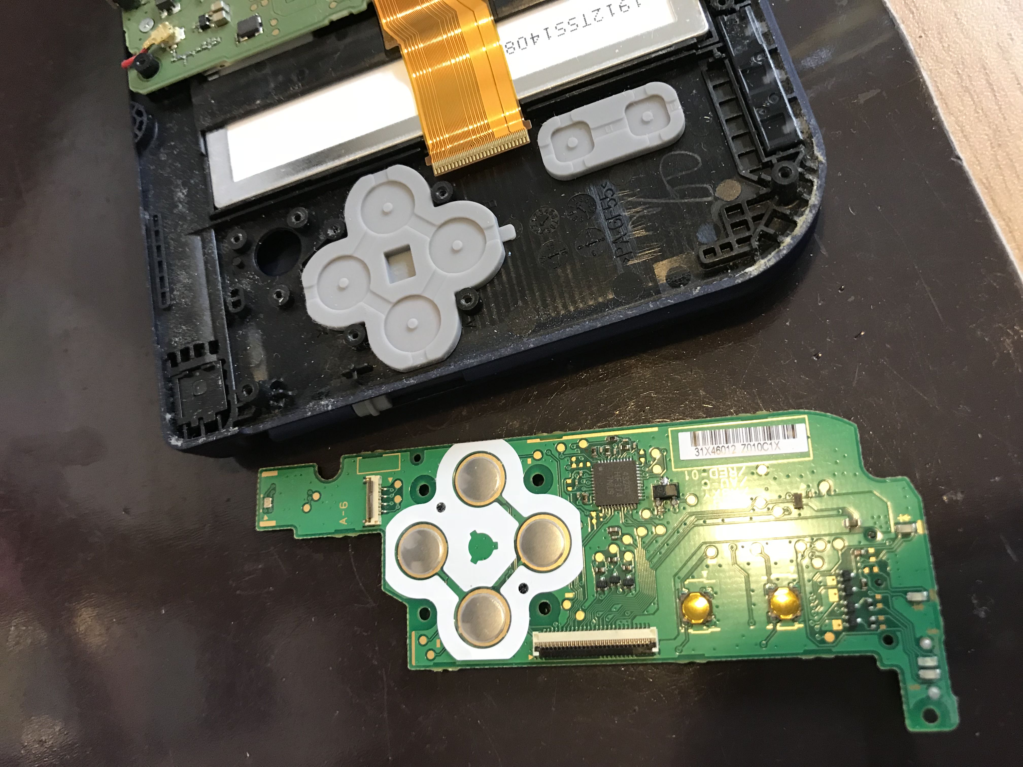 なので基板にカバーを取り付ける前にLRボタンのパーツを交換していきます!ネジを外した後元のパーツを取り外し、新しいパーツを取り付けてあとは動作の確認を取り修理完了です!