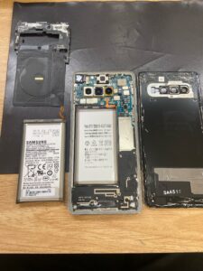 Androidのスマートフォンは背面から分解していく機種が多いですね。今回のS10も背面から分解して古いバッテリーを新しいものに交換していきます。