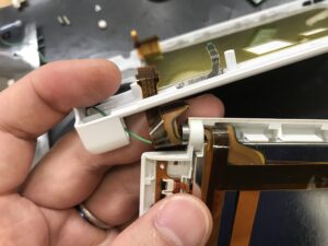 上画面やスピーカーに信号を送るケーブルは左側のヒンジ部分を通っていますが、こちらは無事のようでした。