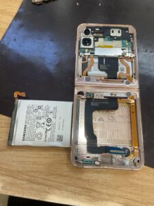 本日の修理内容は、Galaxy Z Flip4のバッテリー交換です。