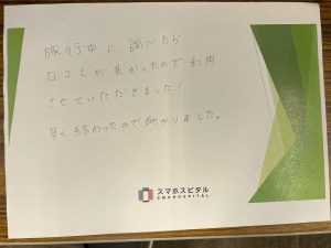 旅行中に調べたら口コミが良かったので利用させていただきました!早く終わったので助かりました。
