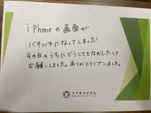 iPhonen画面がバキバキになってしまった! その日のうちにどうしてもなおしたくてお願いしました。ありがとうございました。