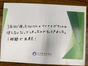 スマホスピタル埼玉大宮 スイッチのジョイコンのマイナスボタンの修理でご来店いただきました。