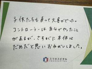 子供たちも直って大喜びでした。 コントローラーは自分でやったことがあるが、さすがに本体はだめだと思いお願いしました。