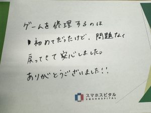 ゲームを修理するのは初めてだったけど、問題なく 戻ってきて安心しました。 ありがとうございました!