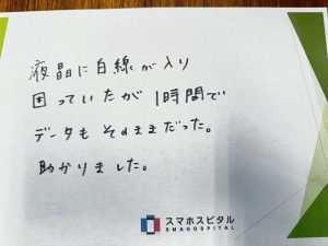 画面に線なようなものがはいり困っていたが1時間でデータもそのままだった。助かりました!
