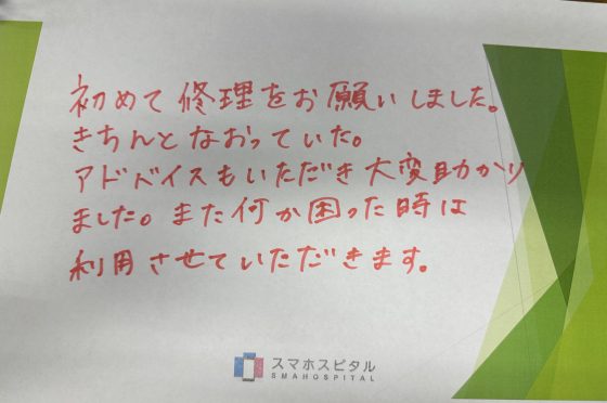 弊社の修理サービスをご利用いただいきましたお客様の声です。