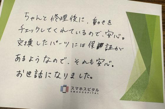 弊社の修理サービスをご利用いただいきましたお客様の声です。