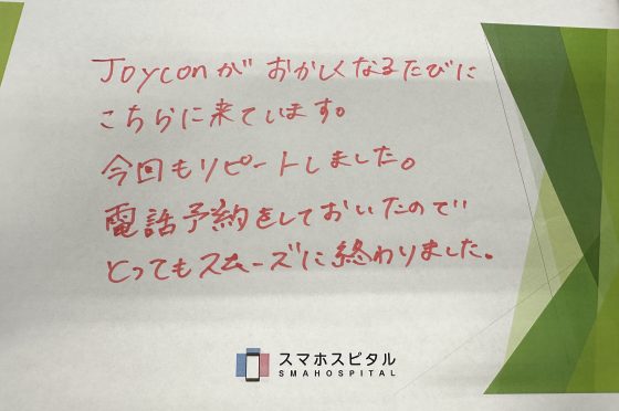 任天堂Switchのスライダー交換修理でご来店いただきました。