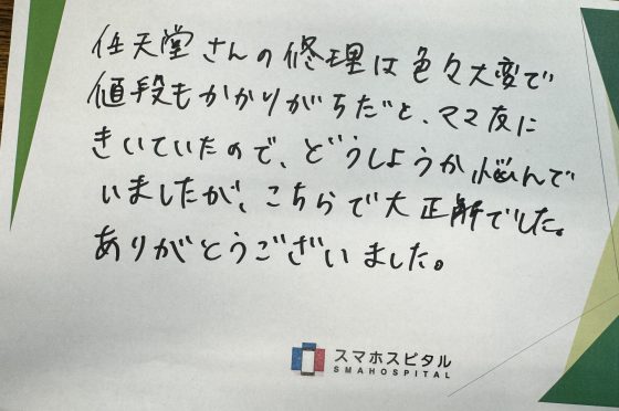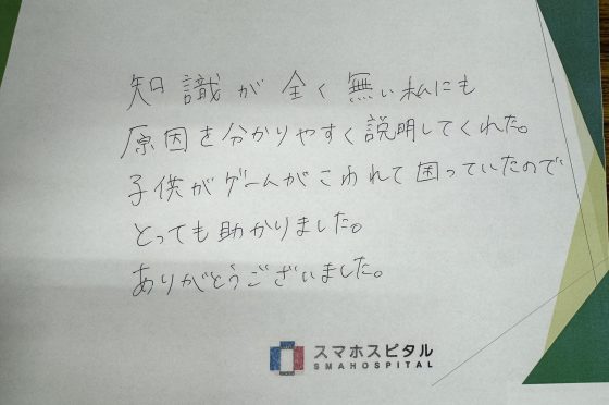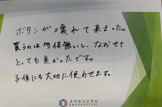 弊社の修理サービスをご利用いただいきましたお客様の声です。