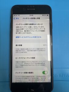 持って来られたときは、バッテリーの最大容量が63%でした!