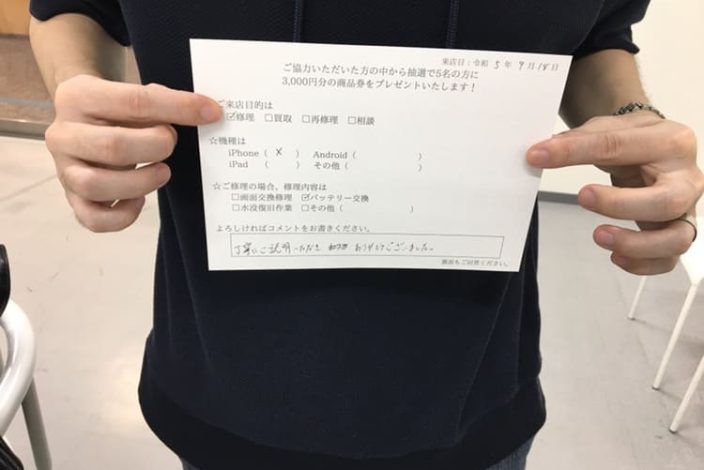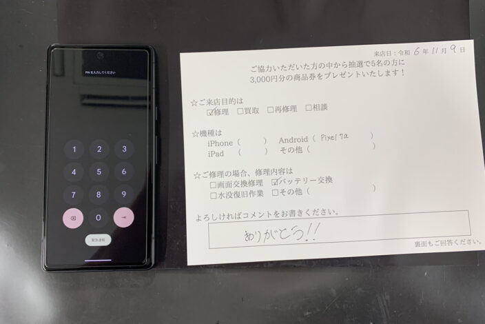 お送りいただいた端末がお店に到着後、修理を行います。