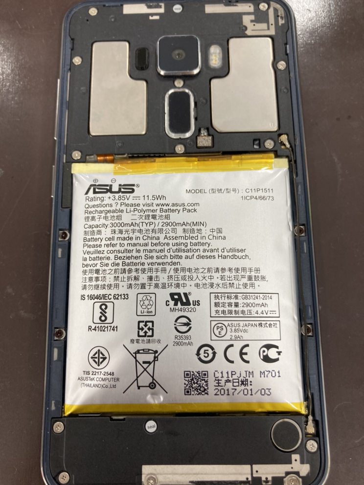 今回はZenfone3のバッテリー膨張による修理依頼をいただきました。