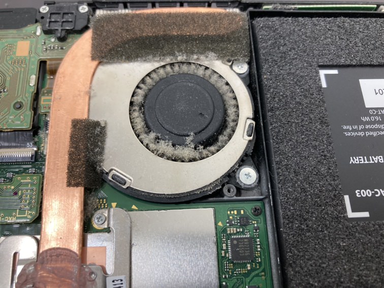 中をあけてみると冷却ファンに埃がビッシリ