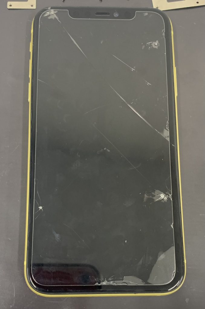 フィルムを突き抜けて画面が割れてしまったiPhone11