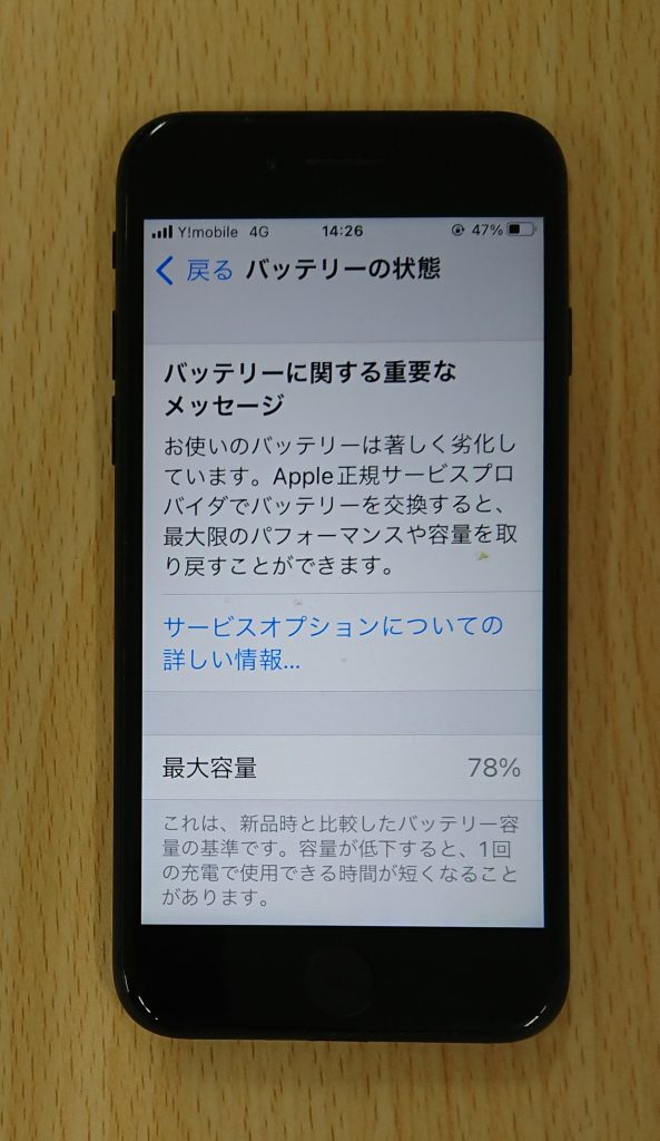 今回のお客様は最大容量が78%でした!ここの最大容量が85%を切ると体感として、