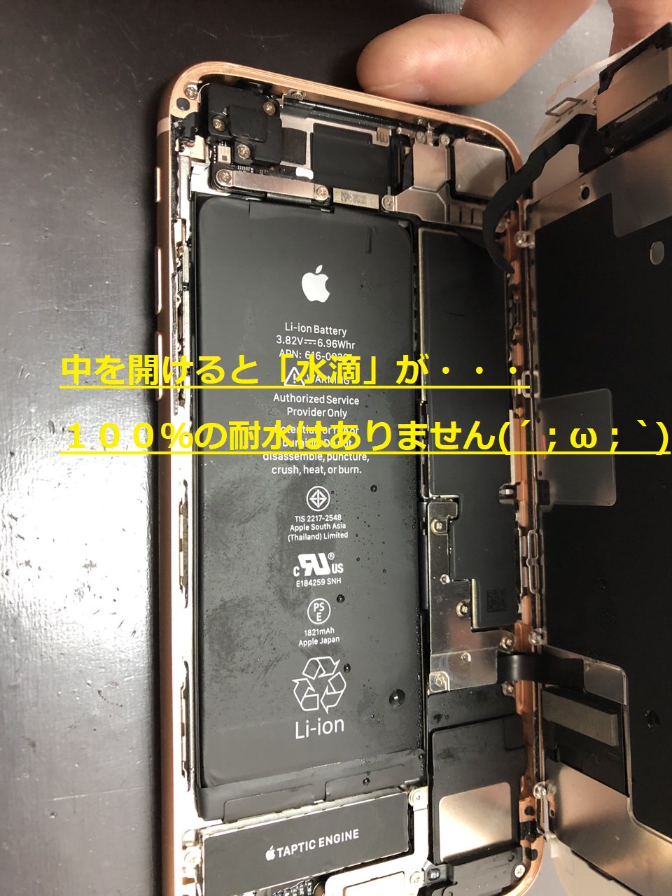 水が直接入っていなくても、外気と内気の温度差により、端末の内部で汗をかいてしまうこともあり