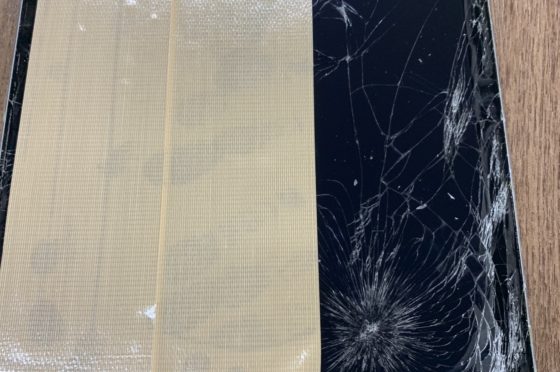 【iPhoneXsMax】液晶に線が入りガラスもクモの巣のように割れています。修理しました。