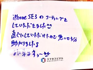 スマホスピタル堺 iPhoneSE3のガラスコーティングをしていただきました!!