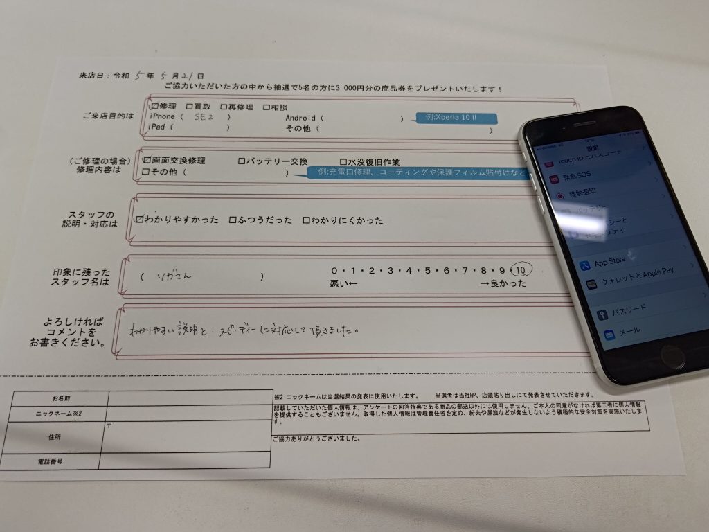iPhoneSE2の画面交換致しました!