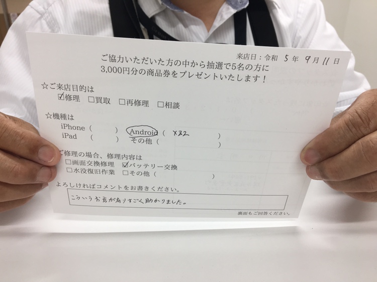 XperiaXz2のバッテリー交換を承りました。
