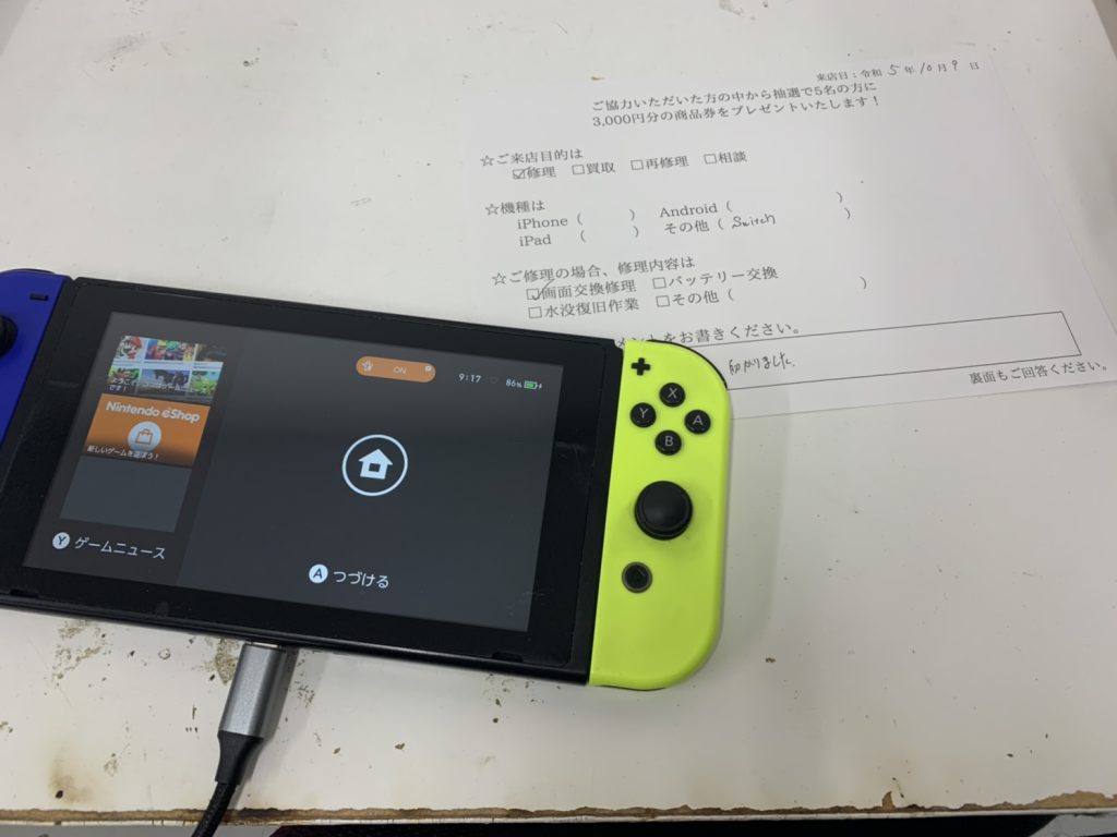 スマホスピタル堺 液晶が破損した任天堂switchの液晶交換修理