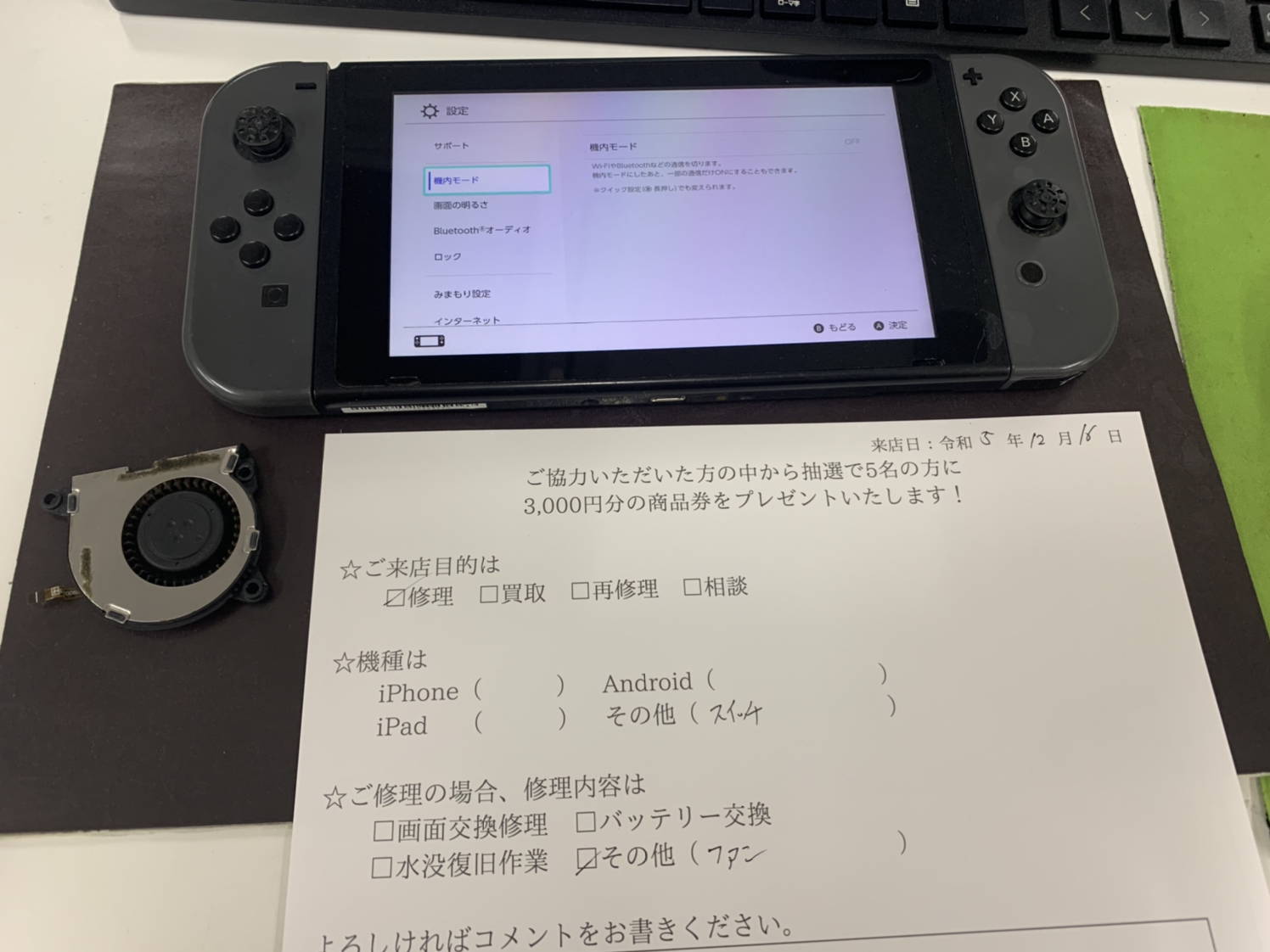 スマホスピタル堺 任天堂switch 冷却ファン交換