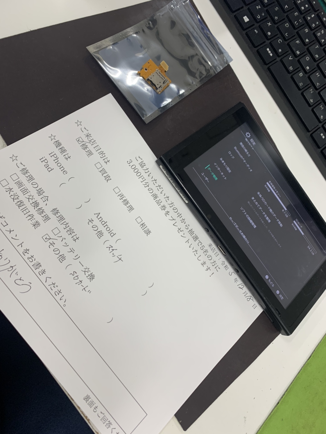 今回お持ちいただいたのは、SD差し込み時に読み込みエラーにより認識しなくなった