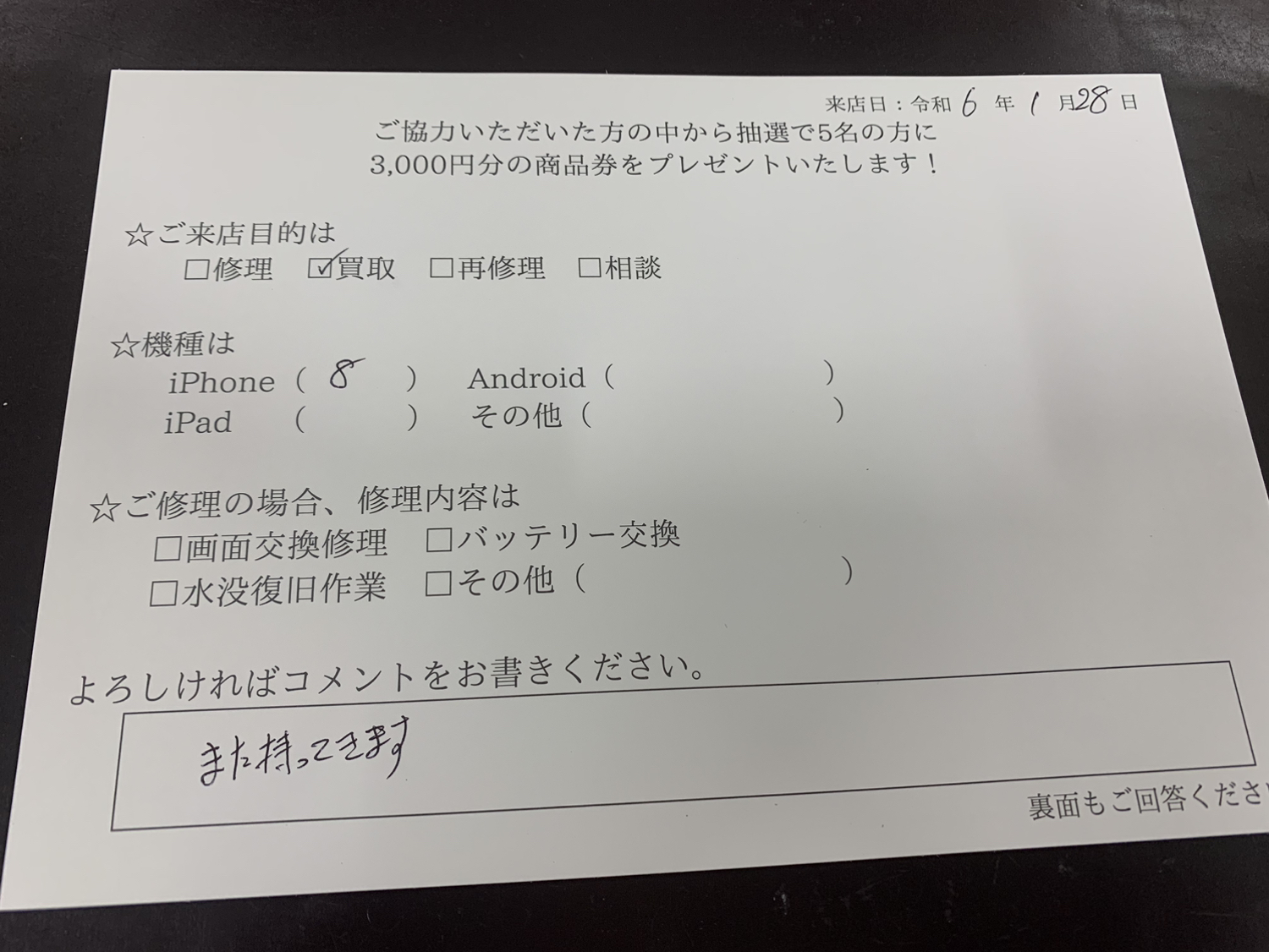 本日は、使用しなくなった中古iPhoneの買取を行いました。