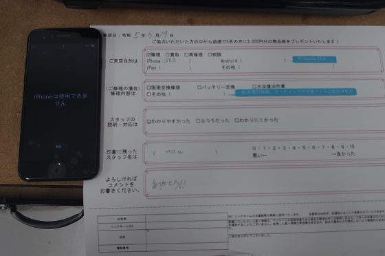 iPhoneSE2 画面交換修理