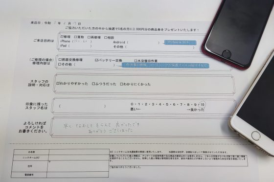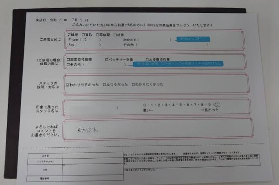 弊社の修理サービスをご利用いただいきましたお客様の声です。